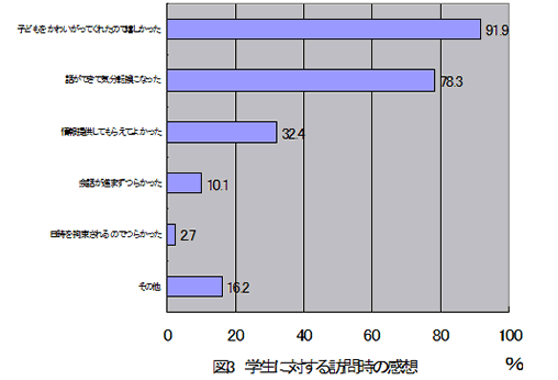 訪問終了後に学生と保護者にアンケート調査をしたところ次のようであった。