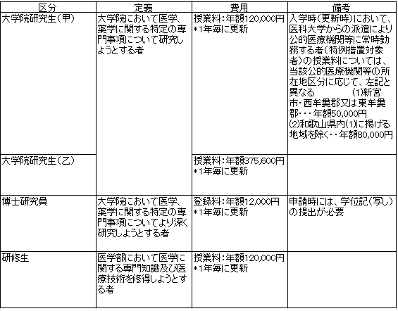 大学院研究生、博士研究員、研修生の各種申請手続きについて