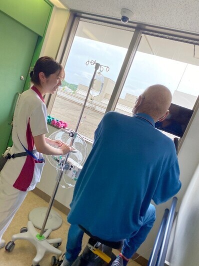 5階西病棟は、血液内科、緩和ケアの混合病棟です。血液内科では、最新の化学療法を用いた医療や、骨髄移植などの高度な医療を提供しています。私たちは、患者さんが退院後も安心して望む生活を実現できるように、多職種と協力しサポートしています。