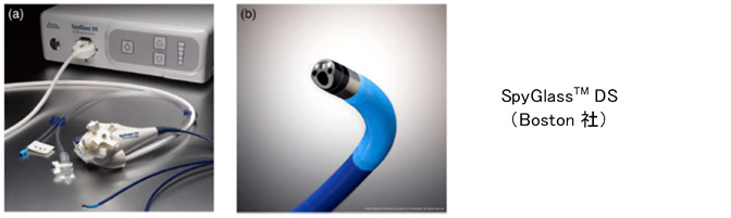 当院では県下で初めて最新式の胆道鏡であるSpyGlass™ DSを導入しました。このSpyGlassを胆管・膵管内に直接挿入することにより、胆管・膵管腫瘍の精密検査が可能となります。また巨大な結石は電気水圧衝撃波胆管結石破砕装置(EHL)と呼ばれるデバイスを用いて、衝撃波により結石を砕いて治療することが可能となりました。